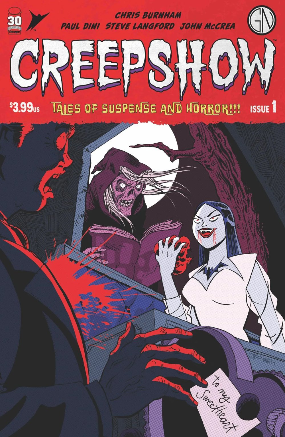 The worldwide phenomenon based on the hit Shudder TV series comes to comics in a star-studded five-issue anthology series that will SCARE YOU TO DEATH. In the debut issue- CHRIS BURNHAM (DIE!DIE!DIE!- NAMELESS) terrifies with a tale of trick or treaters who are taught what happens when you mess with the wrong house. Then- legendary Batman: The Animated Series creator PAUL DINI- STEVE LANGFORD- and JOHN McCREA (DEAD EYES- Hitman) petrify with the party antics of Shingo- the birthday clown with an appetite for more than cake! Each issue of CREEPSHOW will feature different creative teams with uniquely horrifying standalone stories.