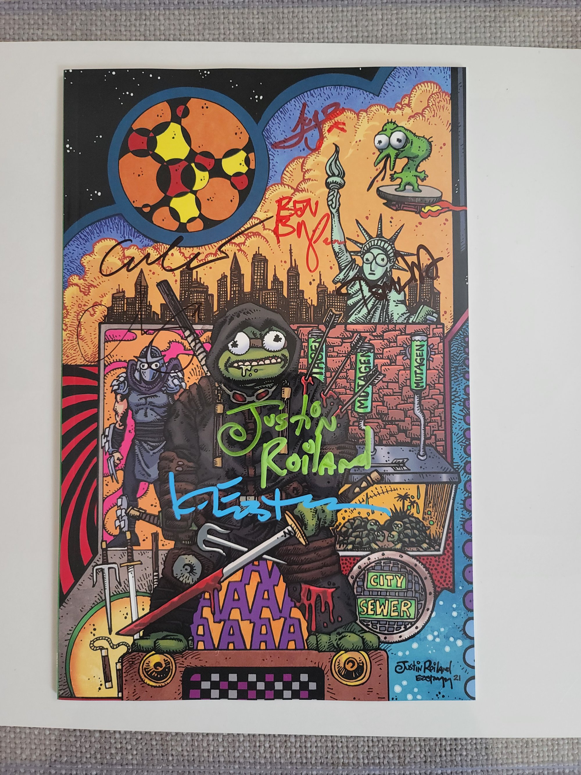 Signed by: Justin Roiland Kevin Eastman Ben Bishop Issac and Esau Escorza Tom Waltz Luis Delgado