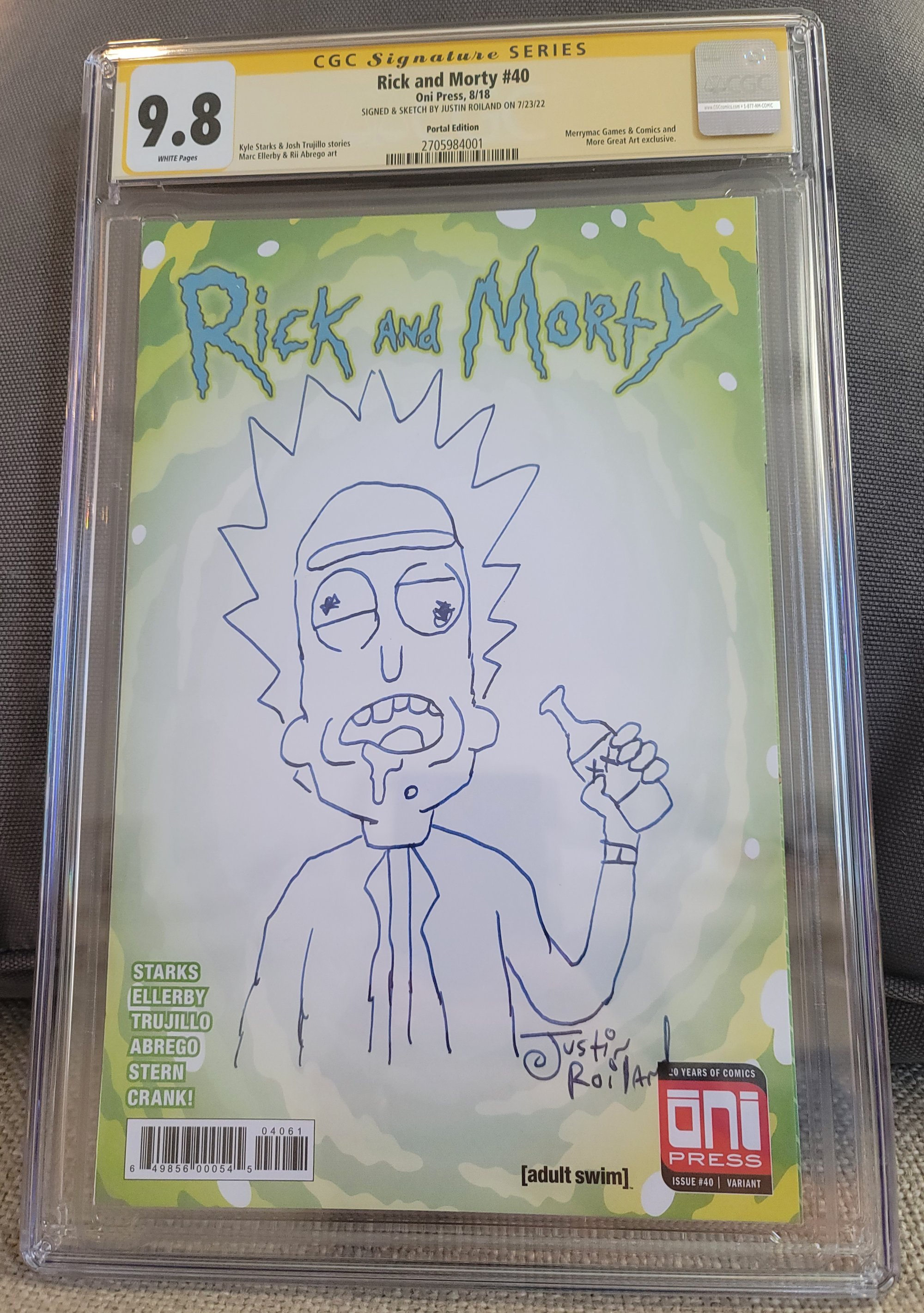 CGC Signature Series graded 9.8 copy of Rick and Morty #40 - featuring an original hand drawn illustration of Rick Sanchez done by Rick and Morty Co-Creator Justin Roiland.